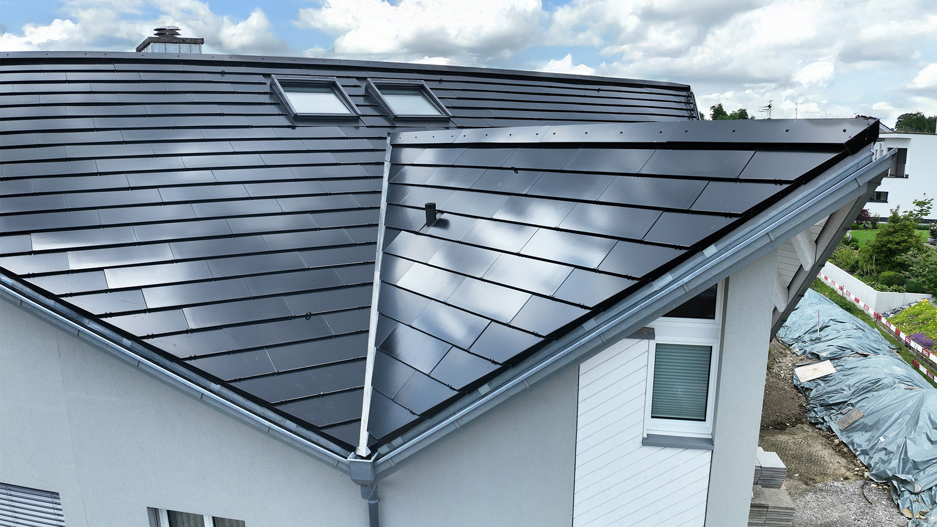 MATCH Slate Fjord „Totally Black“ Module, perfekt integriert mit dem MATCH Slate Indachsystem, liefern 30 kWp Leistung. Eine durchgängig tiefschwarze Dachfläche, die Eleganz, Funktion und Nachhaltigkeit nahtlos vereint.