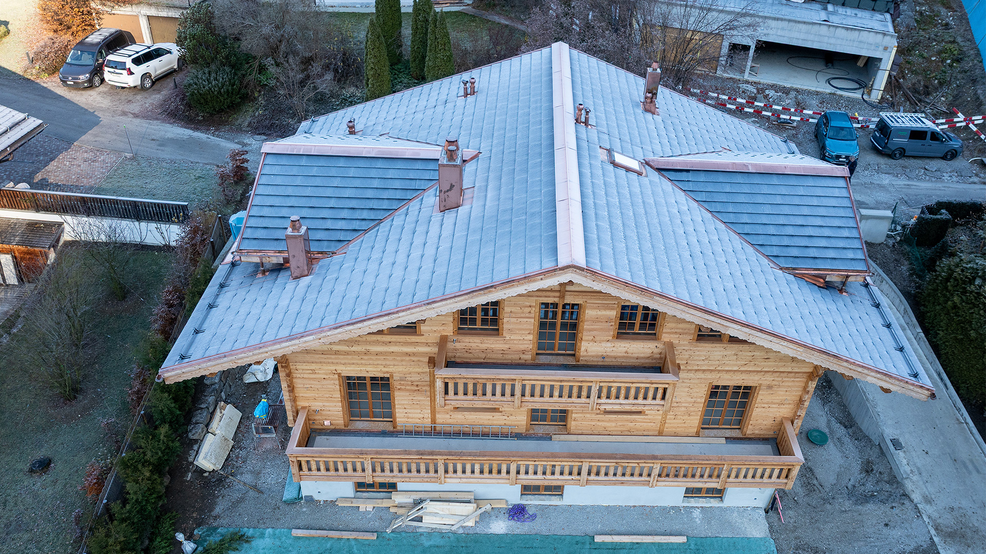 Dieses Haus wird von unserem MATCH Slate Indachsystem vollendet – ausgestattet mit den hochwertigen MATCH Slate Modulen. Was wie eine klassisch elegante Dachfläche wirkt, ist in Wirklichkeit eine nahtlos integrierte Photovoltaikanlage, die architektonische Klarheit mit leistungsstarker Energiegewinnung vereint.