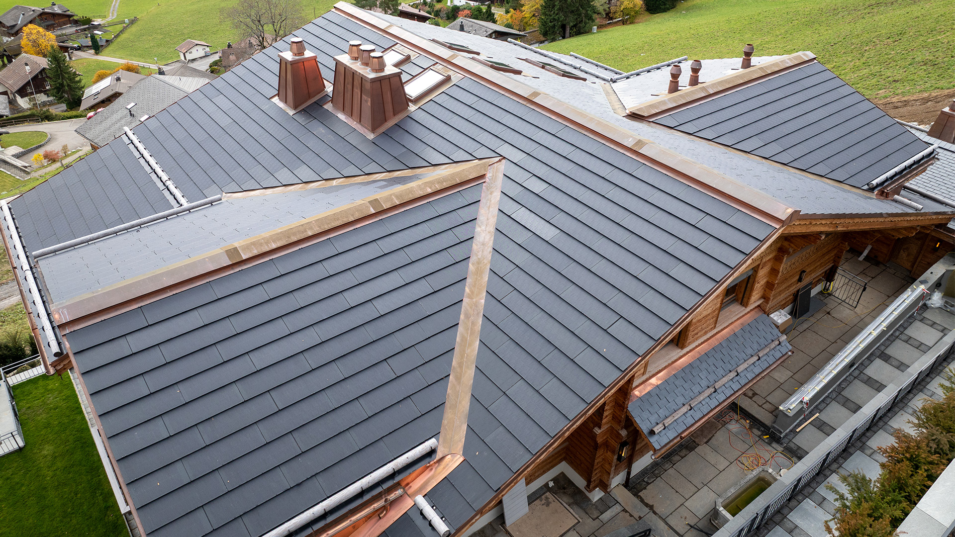 Ein hochwertiges Projekt mit MATCH Slate wurde durch präzise ausgeführte Dächer mit schrägen Kehlabschlüssen realisiert, die elegant mithilfe von InShape-Platten gelöst wurden. Das durchgängige MATCH-Slate-Montagesystem sorgt dabei für eine klare Linienführung, technische Präzision und ein anspruchsvolles Gesamtbild.