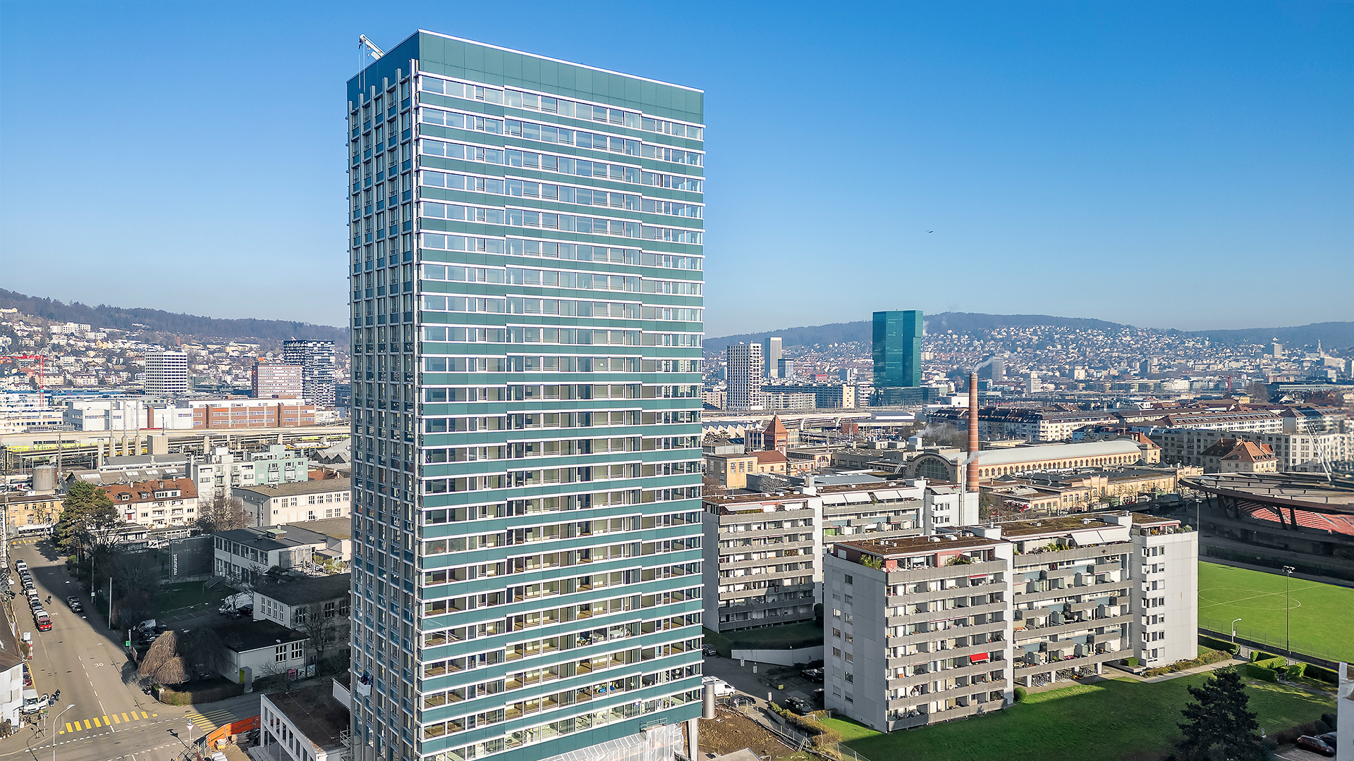 Unsere BIPV-Solarmodule in der Optik "Translucent" vervollständigen die filigrane Fassadenstruktur. Die horizontal angeordneten, lichtdurchlässigen Module erzeugen nachhaltige Energie und lassen zugleich natürliches Licht hindurch – fachgerecht installiert und geplant von der Tresolar AG für eine ästhetische und funktionale Gebäudeintegration.
